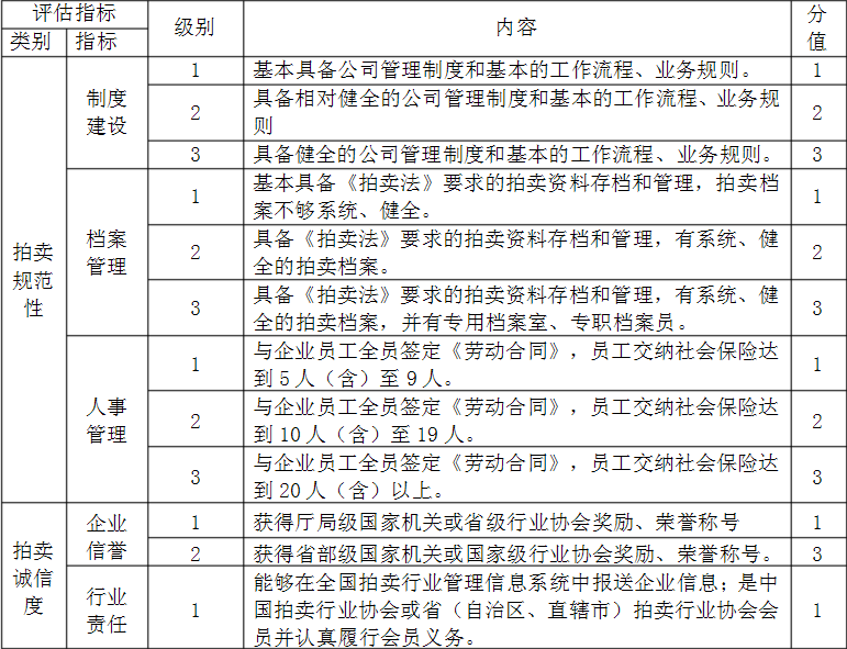 本标准规定了拍卖企业的等级评估原则、评估指标及等